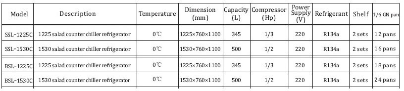 * Usually used in fast food chain, western restaurant and juice shop. It is convenience to store fruits, vegetables and sauce separatively, convenient to make sandwich, hamburger, salad, shaved ice and others.
